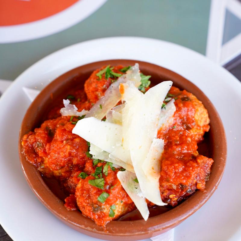 chicken - mushroom meatballs, arrabbiata sauce & parmesan