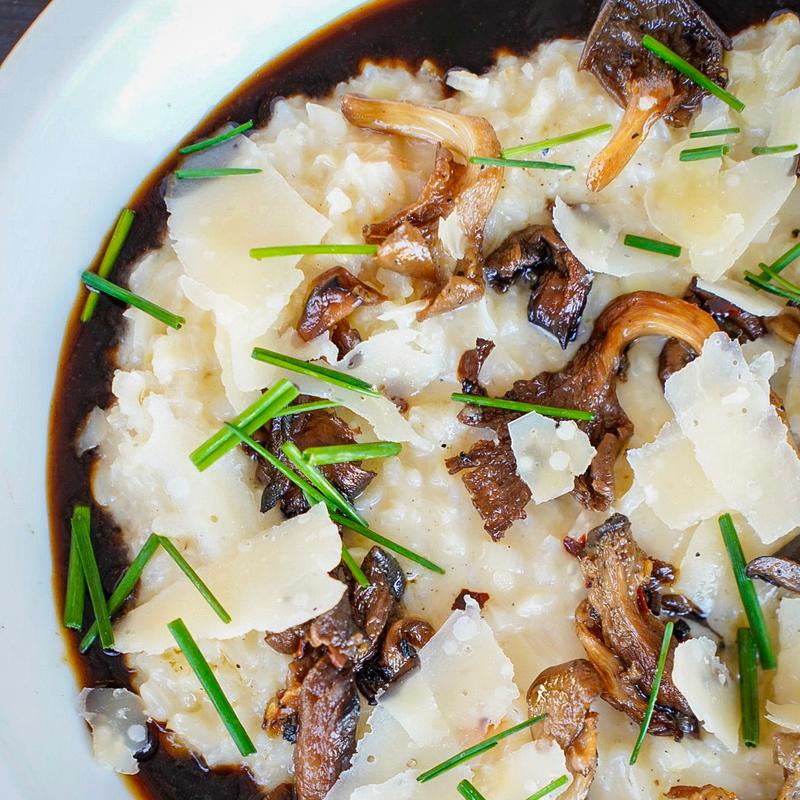 confit blue oyster mushrooms, farm leeks, mushroom demi, parmesan, pecorino, chives